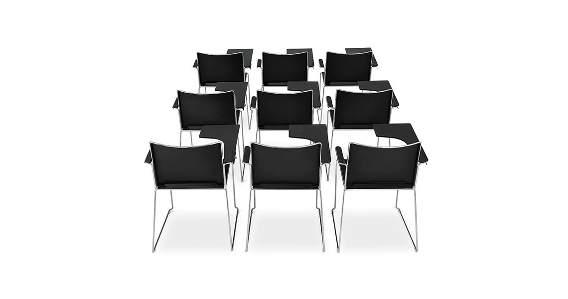 Sedie accatastabili con tavoletta scrittoio pensate per l'arredo collettivo e sala polivalente